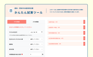 厚生労働省から、産休・育休中の給付内容等を簡易的に計算できる「かんたん試算ツール」が公開されました。